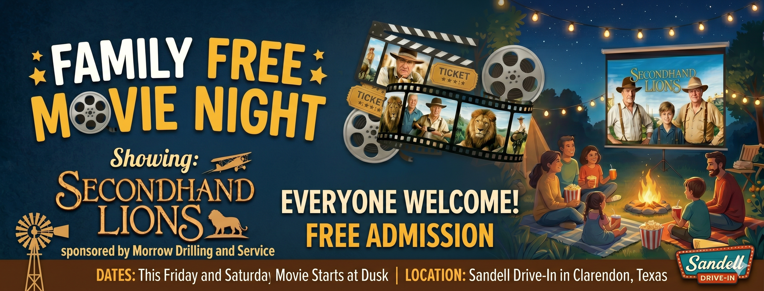 🎟️ ADMISSION IS 100% FREE! 🎟️ This special community event is proudly Sponsored by Morrow Drilling & Service 🏗️💨—helping us keep the tradition alive since 1955! 📽️✨