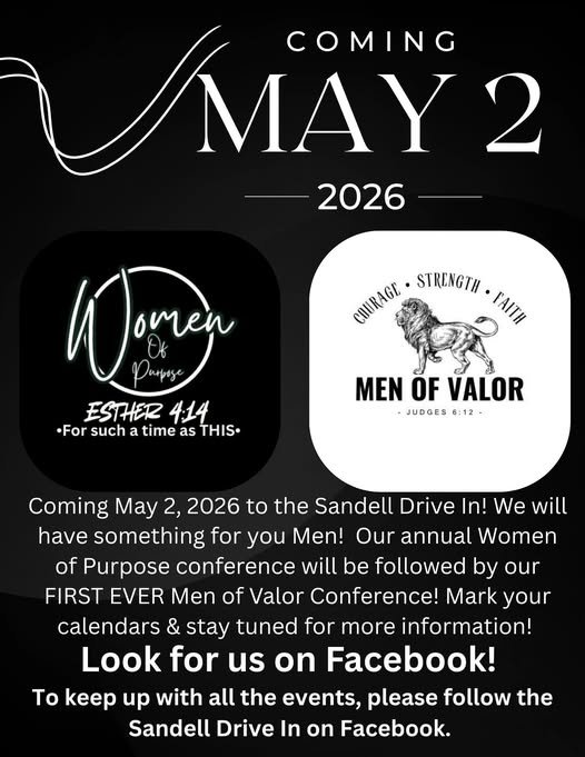 • Sandell Drive-In Facebook Page for all upcoming ministry events